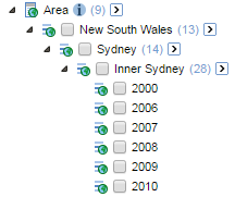 The sample Retail Banking database contains data for a number of hierarchical fields, such as the Area field in the Customers table, which appears as follows in the SuperSTAR clients: