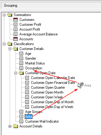 For example, in the Retail Banking database, the Area field uses the following classification tables: