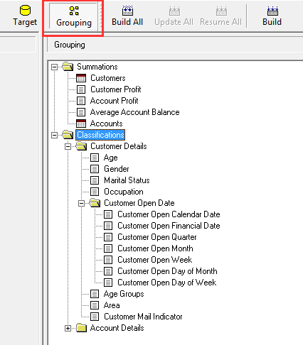 You can create folders to group fields together. In the example above there is a folder call Customer Open Date that contains all the related classification fields.
