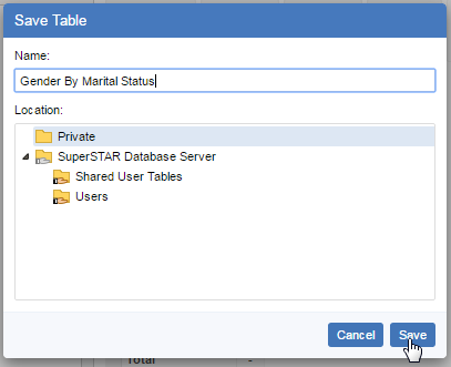 Select Manage Tables from the top-right menu and check that your saved table displays in the list: