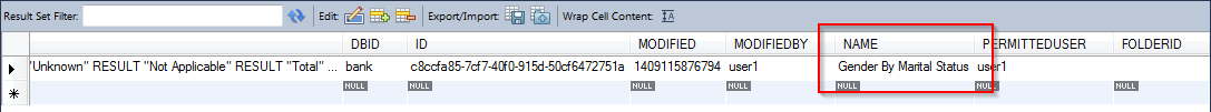 Go to your RDBMS and check the TXD table in the database you created to verify that the saved table is present: