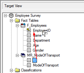 In the Target View, select the multi-response fact table and then select the Multi-Response check box in the Target Attributes pane:
