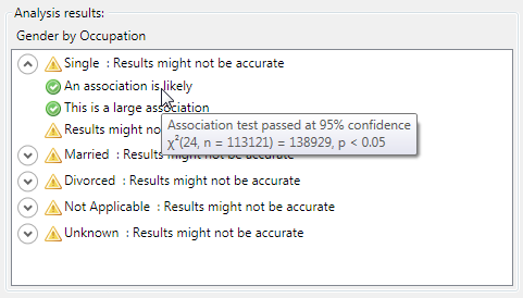 The Analysis Results section displays an analysis of how strong the association is. Move your mouse over this section to see more details about the results.
