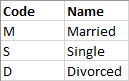 The classification table for Gender might look like this: ![]() | The classification table for Marital Status might look like this: ![]() |