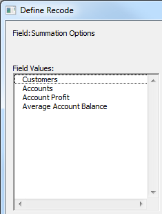 Summation Field | A continuous variable/measure available in the clients through the Summation Options. Do not use field level security on the default summation option, or on the main weight if this is a weighted database. This applies even if you are using the SuperWEB2 rules engine to override the default summation option. The default summation configured in the SXV4 must be accessible to all users. |