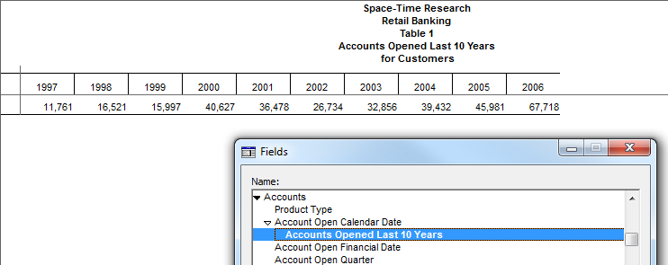 The first step is to create a recode showing the number of accounts opened over the last ten years (the recode is not necessary for the forecast, but it makes it easier to view the data in a table).