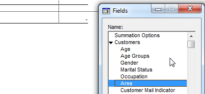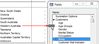 In this example, the Occupation field is nested beneath the Area field. To reverse this, simply drag the Occupation field onto the Area field:
