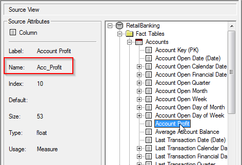 For example, to specify the column highlighted below, you would use Acc_Profit, not Account Profit: