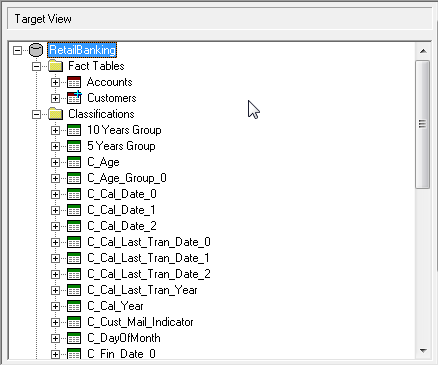 ![]() | Display the Target Attributes pane. This allows you to view and change various attributes for your target database tables and columns, such as the labels to display in the SuperSTAR clients and the column data types and usages. |
