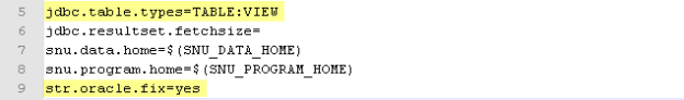 java.class.path=), and add the following to the end of the definition:TEXT$(SNU_PROGRAM_HOME)\jar\drivers\ojdbc6.jar;Each entry in the Java class path definition must be separated by a semi colon.