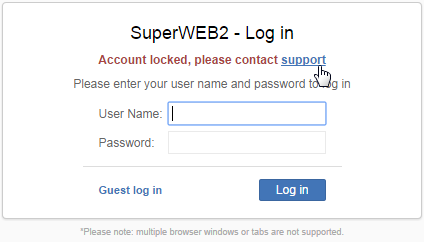 There are some login error messages included with SuperWEB2 that contain an email address link for the user to contact support. For example: