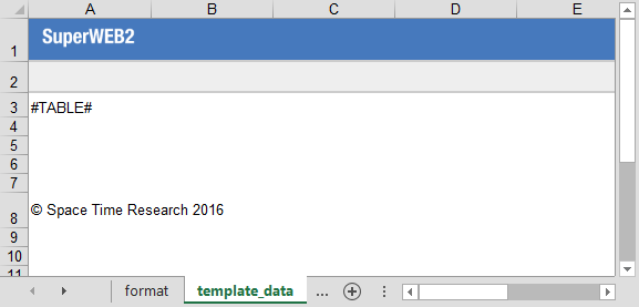 | template_data | This work sheet will be used as the template for a standard table download. It can contain any content you like, but must include the string #TABLE# somewhere on the worksheet. SuperWEB2 will replace #TABLE# and the following 2 rows with the table data. | ![]() | ||||||||||||||||||||