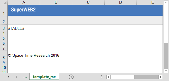 | template_rse | This is an alternative template that will be used for the download if the Relative Standard Error (RSE) feature is enabled. In this case the RSE data will be included in the download in a separate work sheet. As with the standard template it must include the string #TABLE# somewhere on the sheet. SuperWEB2 will replace this and the following 2 rows with the table data. | ![]() |