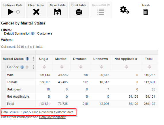bankandpeople, SuperWEB2 will display the text "Dataset: Space-Time Research synthetic data". - For tables created using the dataset with the ID