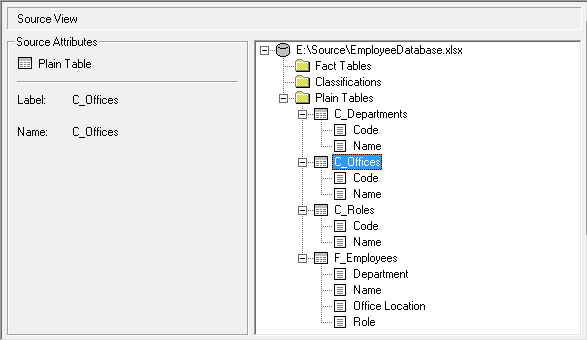 SuperCHANNEL populates the Source View with the tables (named ranges) from the Excel workbook. It interprets the first row in each named range as the column names: