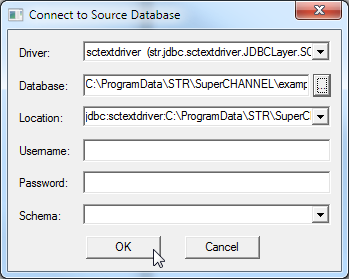 - In SuperCHANNEL, select File > Connect to Source. The Connect to Source Database dialog displays.