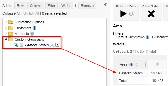 For example, suppose we want to create a group from some of the States in the Area field. Select the states from the list and click »» :
