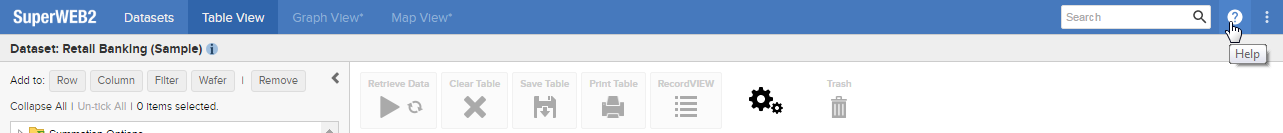 SuperWEB2 is supplied with built-in online help that users can access from the button on the top-right: