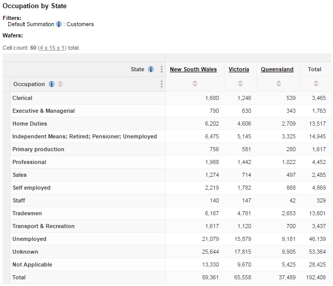 When you start to create a table, SuperWEB2 automatically adds the default summation to the table filters: