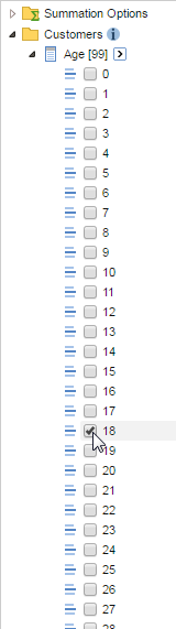 In the tree, expand the Age field and select the first item in the range (in this case, 18):