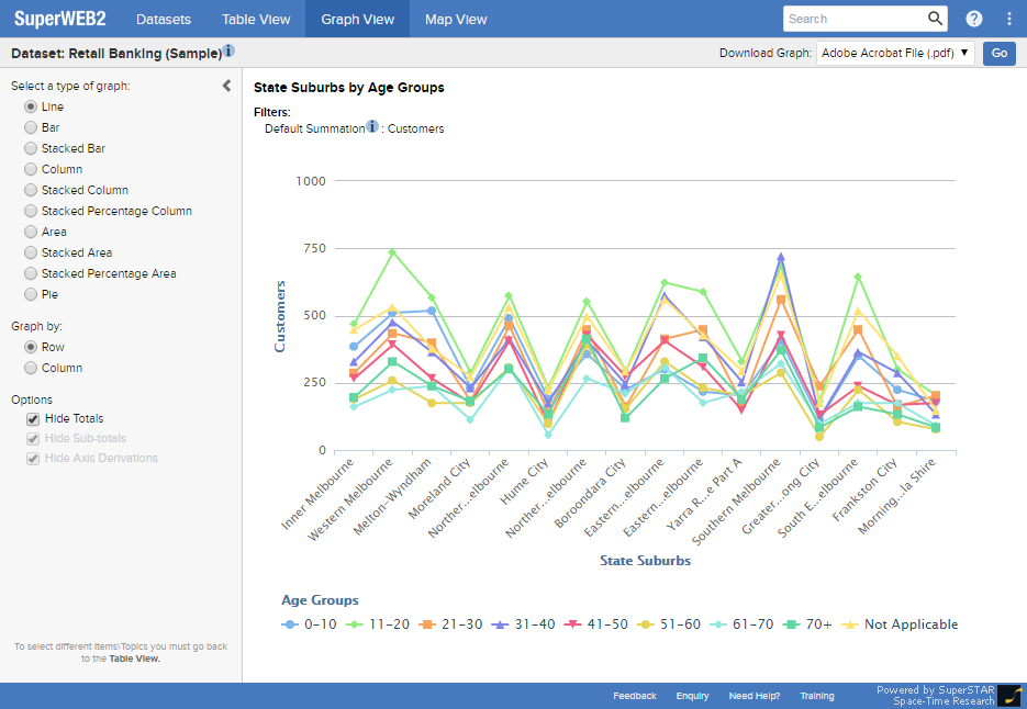 To maximise the amount of space available for viewing your graph, you can close the Customise Graph section by clicking the Close button. Click Customise Graph to open it again.
