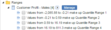 Create four ranges based on an equal distribution of the Customer Profit summation option: