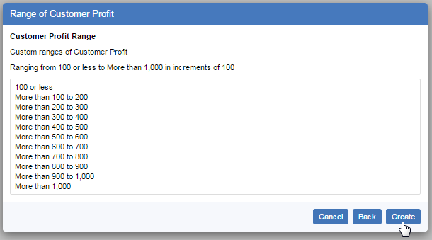 In the Number of ranges drop-down list, select the number of ranges you want to create. The available options will depend on how the administrator has configured the quantile settings for this dataset. For example: