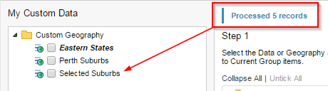 In the My Custom Data section, select the check box next to the group you want to save (you can only save one group at a time, and you can only save private groups that you have created, not shared groups).