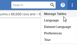 Once you have saved a table, you can access that table again by selecting the Manage Tables option from the menu in the top right of SuperWEB2:
