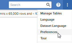 If you do not see the Preferences option on the menu, then this means that your administrator has turned off the ability to set this preference. Your saved tables will be displayed in the order set by your administrator (by default, this is alphabetical order).