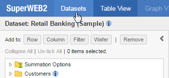 You can also access saved tables from the datasets tab. This is displayed when you log in to SuperWEB2, or whenever you click the Datasets link in the top left corner: