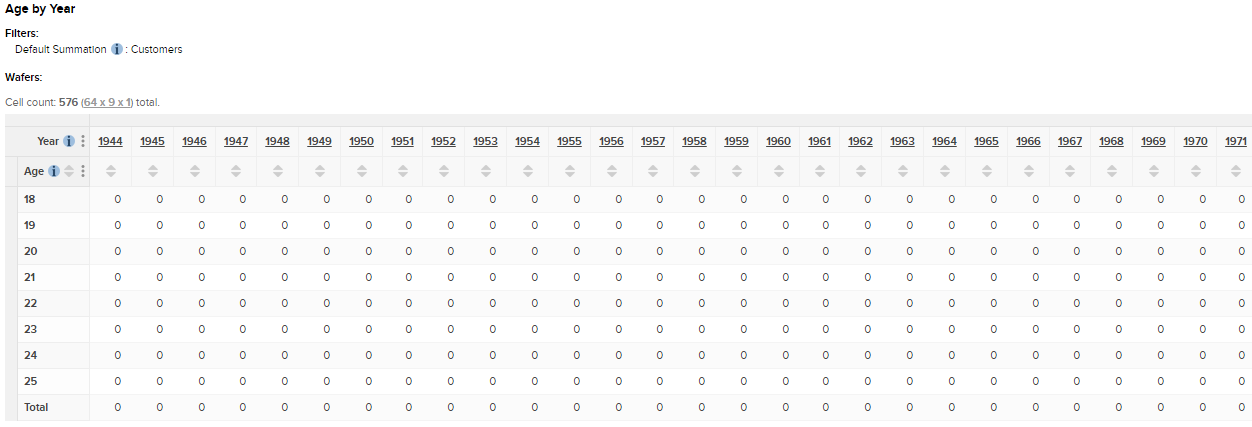 This means that you may still see rows and columns with all zero values in your table: if a row or column only contains zeros on the current wafer, but has values on at least one of the other wafers, then it will not be suppressed.